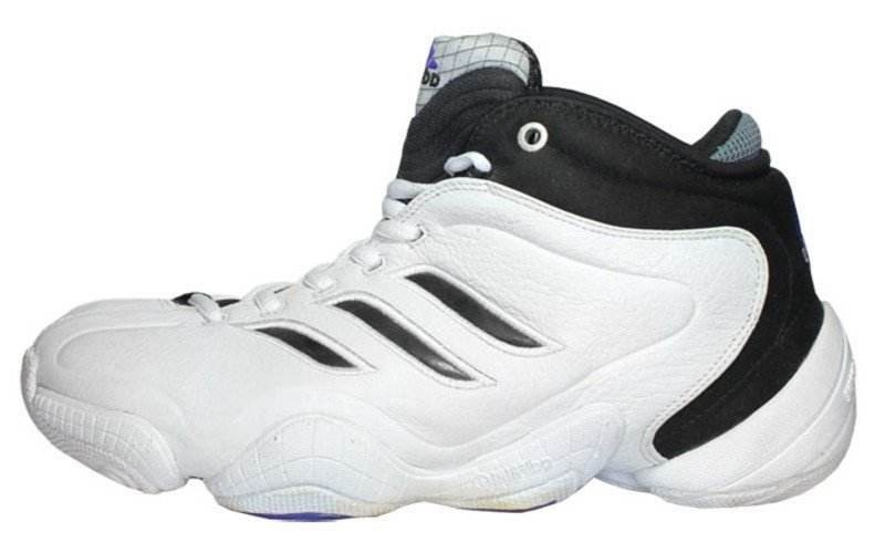 1996年NBA選秀大會第一輪,夏洛特黃蜂隊用手中的十三號簽選中了年僅十七歲的高中生科比,并將其換到洛杉磯湖人隊。職業(yè)生涯的第一年,年幼的科比并沒有獲得太多的上場機(jī)會,但卻被阿迪達(dá)斯看中,與其簽約了為期6年價值4800萬美元的球鞋合同??票鹊谝浑p上腳的球鞋是阿迪達(dá)斯的“FEET YOUR WEAR”天足系列。其產(chǎn)品具有標(biāo)志性的外形和大底足,有別于一般楦頭的棱角邊緣,天足的腳與足跟部造型更圓滑流線化,造出來的鞋子更加合腳。但當(dāng)時天足的技術(shù)應(yīng)用并不成熟,中底技術(shù)的缺乏是這雙鞋的致命傷,天足概念下的鞋子在于最大限度的使足部活動得無拘無束,進(jìn)而完全發(fā)揮其最原始強(qiáng)勁的力量,所以在模仿足部生理結(jié)構(gòu)的同時,為了減輕重量和增加腳感中底的部分比一般鞋子都要薄,這樣一來,如果運用的中底材料比較陳舊,耐久度不高,不能長時間保持一貫的優(yōu)良性能的話,反而會縮短鞋子的壽命。