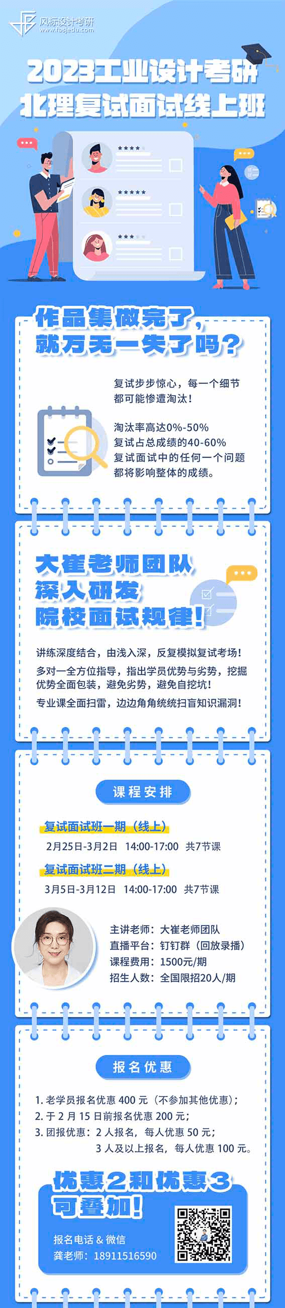 北京理工大學(xué)2023年工業(yè)設(shè)計考研復(fù)試逆襲班 發(fā)布時間:2023-02-07 北京理工大學(xué)2023年工業(yè)設(shè)計考研復(fù)試逆襲班報名咨詢電話&微信18911516590 上一篇:2023年工業(yè)設(shè)計考研初試成績查詢時間 下一篇:北京理工大學(xué)工業(yè)設(shè)計考研真題詳解:2023年