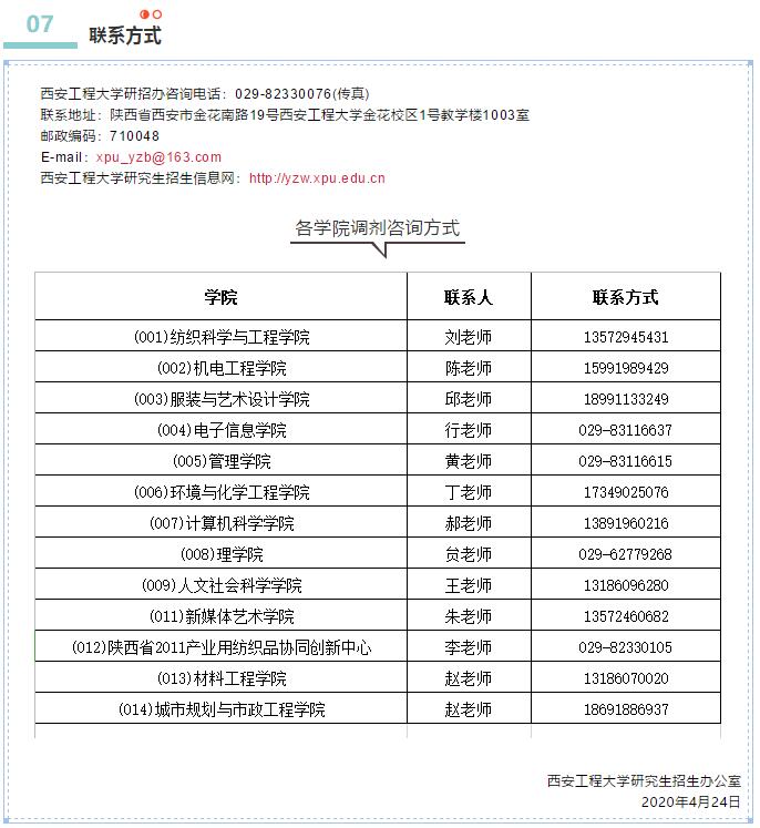 西安工程大學(xué)2020年考研調(diào)劑信息公布 發(fā)布時間:2020-04-24 西安工程大學(xué)2020年考研調(diào)劑信息公布 上一篇:長沙理工大學(xué)2020年考研調(diào)劑信息公告 下一篇:北京林業(yè)大學(xué)藝術(shù)設(shè)計學(xué)院2020年考研調(diào)劑信息公布