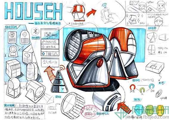 手繪快題作品-家用便攜折疊音響設(shè)計(jì)