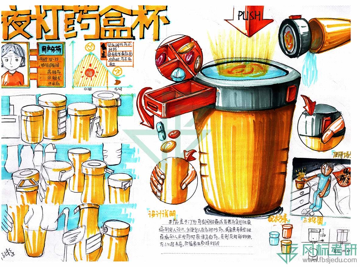 手繪快題作品-夜燈醫(yī)藥杯設(shè)計(jì)