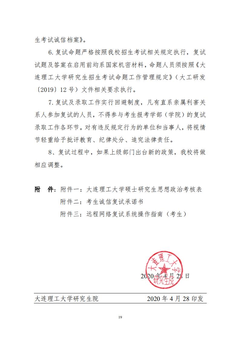 大連理工大學(xué)2020年考研復(fù)試安排公告 發(fā)布時間:2020-04-28 上一篇:大連理工大學(xué)2020年考研復(fù)試分?jǐn)?shù)線 下一篇:大連理工大學(xué)建筑與藝術(shù)學(xué)院2020年考研復(fù)試辦法公告