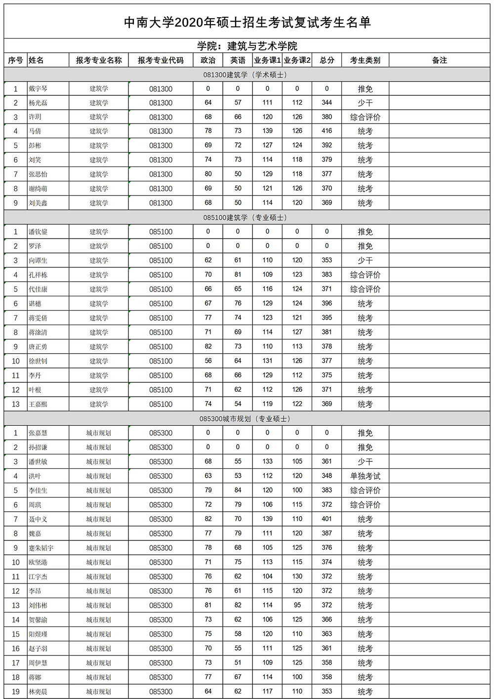 中南大學建筑與藝術學院2020年考研復試學院線及復試名單公布