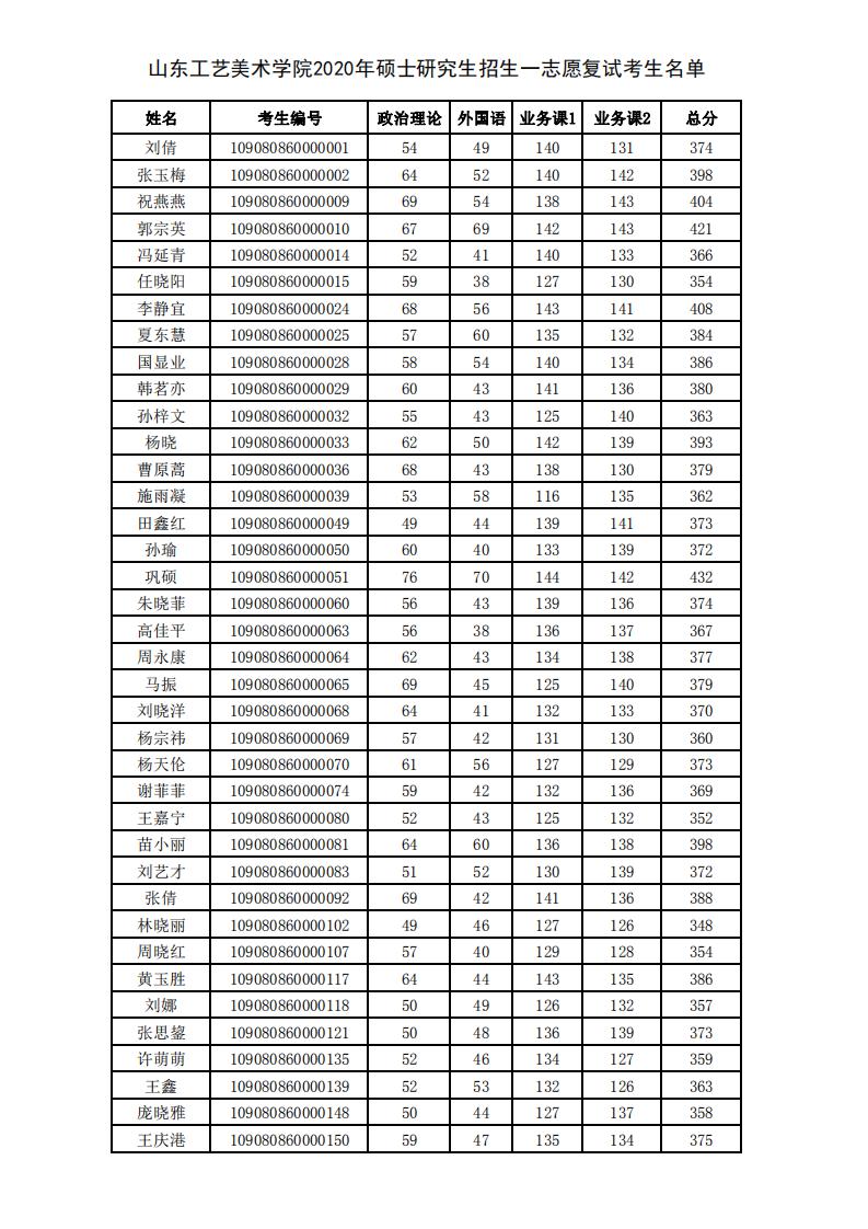 山東工藝美術(shù)學(xué)院2020年考研復(fù)試名單公布 發(fā)布時(shí)間:2020-05-07 山東工藝美術(shù)學(xué)院2020年考研復(fù)試名單公布 上一篇:山東工藝美術(shù)學(xué)院 2020年考研復(fù)試錄取工作辦法 下一篇:山東工藝美術(shù)學(xué)院2020年考研錄取名單公示