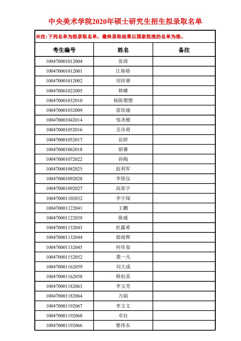 中央美術學院2020年考研錄取名單公示 發(fā)布時間:2020-05-11 中央美術學院2020年考研錄取名單公示 上一篇:中央美術學院2020年博士研究生專業(yè)目錄 下一篇:中央美術學院2020年考研復試分數(shù)線公布