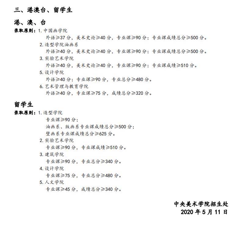 中央美術學院2020年考研復試分數(shù)線公布 發(fā)布時間:2020-05-11 中央美術學院2020年考研復試分數(shù)線公布 上一篇:中央美術學院2020年考研錄取名單公示 下一篇:中央美術學院建筑學院2021年室內(nèi)設計考研招生目錄