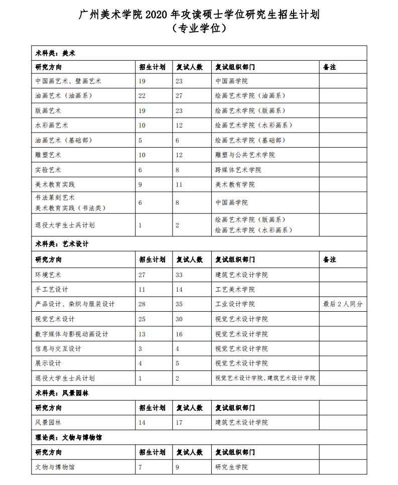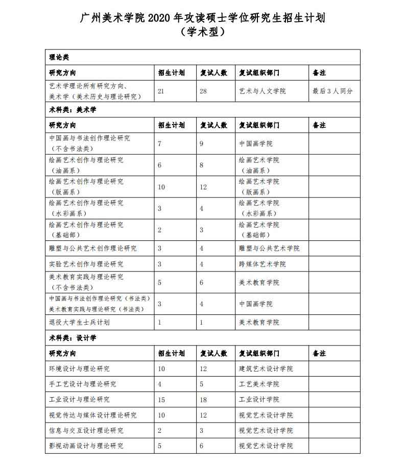 廣州美術(shù)學(xué)院2020年考研招生人數(shù)公告