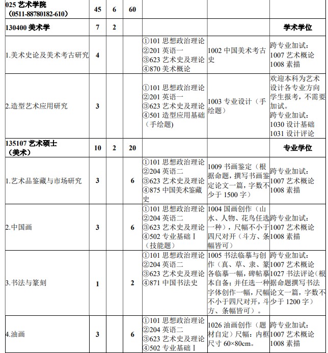 江蘇大學(xué)藝術(shù)學(xué)院2021年考研招生目錄及參考書目