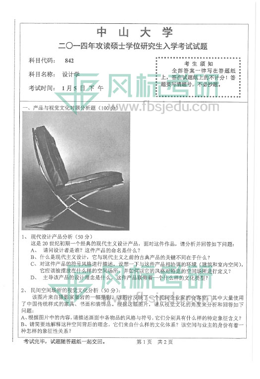 中山大學交互設(shè)計考研2014年考研真題:842設(shè)計學 發(fā)布時間:2019-12-26 中山大學交互設(shè)計考研2014年考研真題:842設(shè)計學 上一篇:中山大學交互設(shè)計考研2014年考研真題:648交互設(shè)計 下一篇:中山大學交互設(shè)計考研2015年考研真題:334新聞與傳播專業(yè)綜合能力