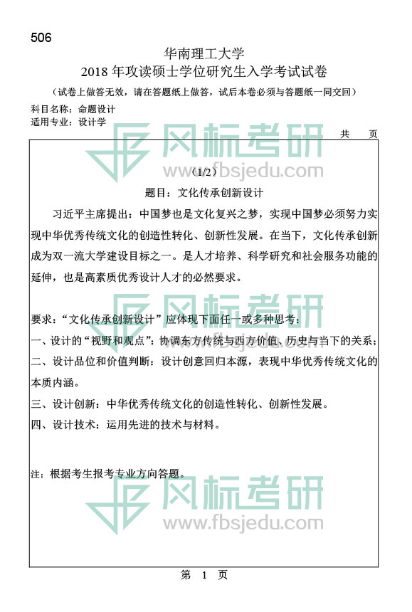 華南理工大學(xué)環(huán)境設(shè)計考研考研2018年真題:506命題設(shè)計 發(fā)布時間:2020-12-04 華南理工大學(xué)環(huán)境設(shè)計考研考研2018年真題:506命題設(shè)計 上一篇:華南理工大學(xué)設(shè)計學(xué)考研考研2018年真題:505素描 下一篇:華南理工大學(xué)視覺傳達與媒體考研考研2018年真題:506命題設(shè)計