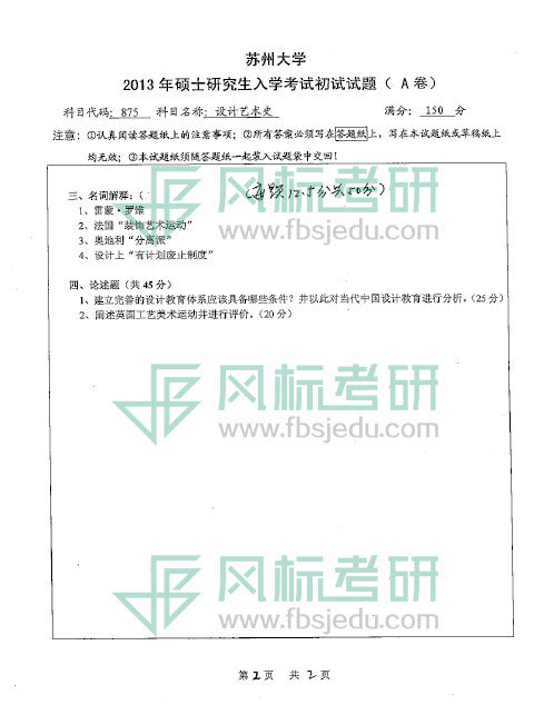 蘇州大學藝術學院工業(yè)設計工程考研2013年考研真題:875設計藝術史 發(fā)布時間:2019-09-05 上一篇:蘇州大學藝術學院工業(yè)設計工程考研2013年考研真題:337設計基礎 下一篇:蘇州大學藝術學院設計學、藝術設計考研2013年考研真題:612繪畫基礎