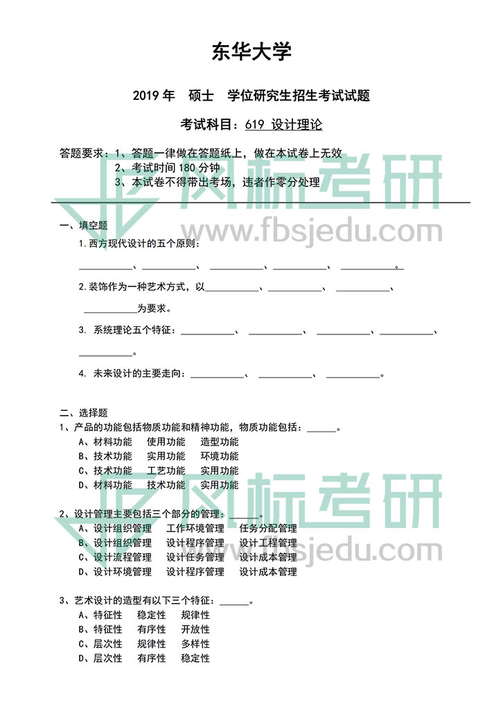 東華大學(xué)設(shè)計(jì)學(xué)、藝術(shù)設(shè)計(jì)考研2019年真題:619設(shè)計(jì)理論 發(fā)布時(shí)間:2019-09-07 上一篇:東華大學(xué)設(shè)計(jì)學(xué)、藝術(shù)設(shè)計(jì)考研2018年真題:619設(shè)計(jì)理論 下一篇:東華大學(xué)2021年考研初試成績查詢時(shí)間2月26日公布