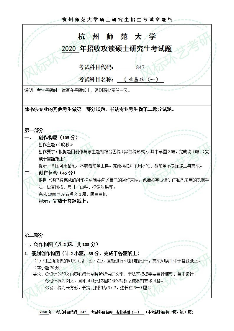 杭州師范大學(xué)美術(shù)學(xué)院2020年考研真題:847專業(yè)基礎(chǔ) 發(fā)布時(shí)間:2020-12-23 上一篇:杭州師范大學(xué)美術(shù)學(xué)院2020年考研真題:846藝術(shù)概論 下一篇:杭州師范大學(xué)美術(shù)學(xué)院2020年考研真題:848專業(yè)基礎(chǔ)(二)