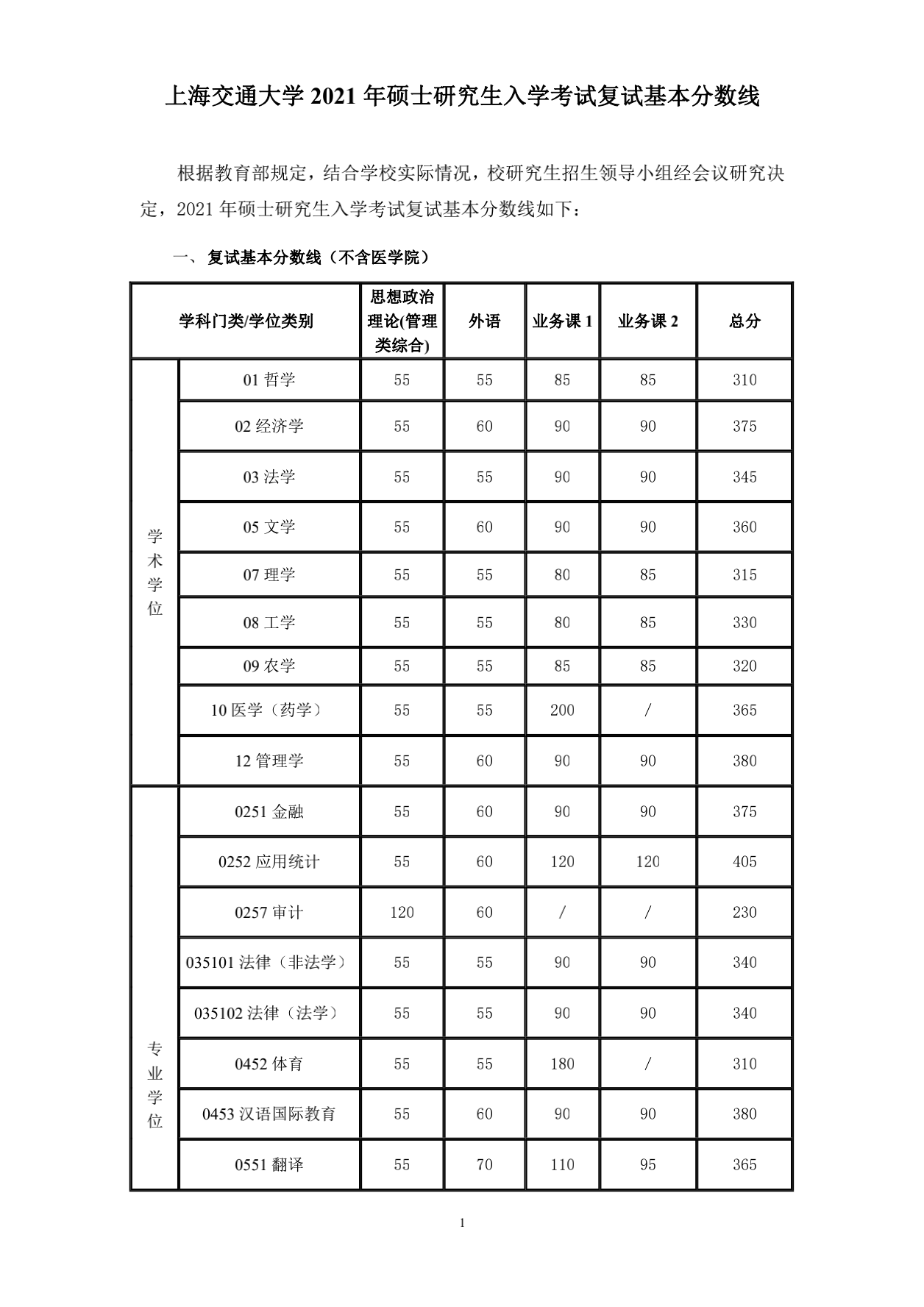 上海交通大學2021年考研復試分數線公布 發(fā)布時間:2021-03-12 上海交通大學2021年考研復試分數線公布 上一篇:上海交通大學2021年考研初試成績查詢時間2月26日公布 下一篇:上海交通大學設計學院2021年考研復試分數線及招生人數計劃