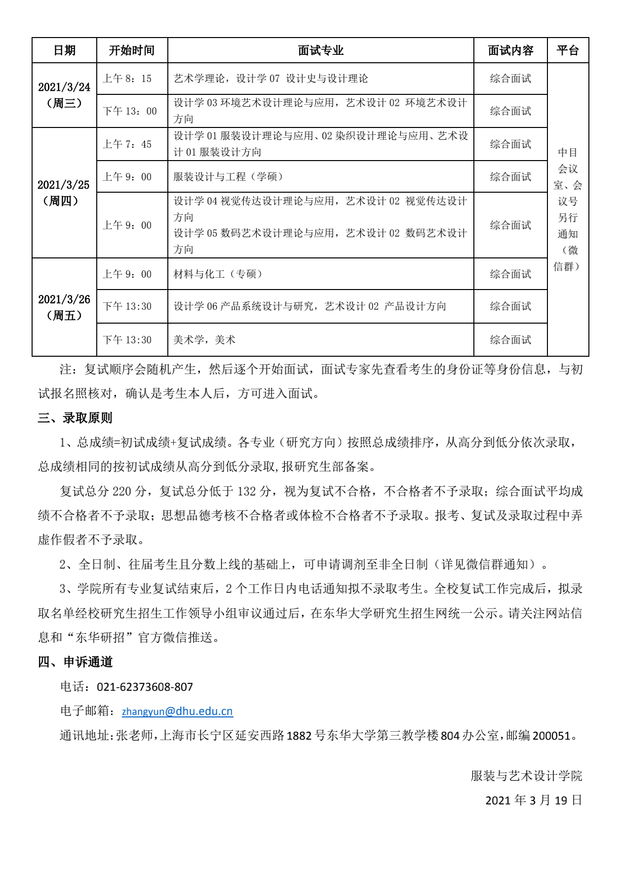 東華大學(xué)服裝與藝術(shù)設(shè)計(jì)學(xué)院2021年考研復(fù)試安排及招生人數(shù)