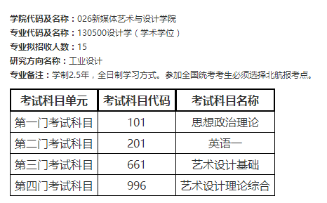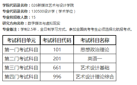 北京航空航天大學新媒體設(shè)計與藝術(shù)學院2020年考研招生目錄