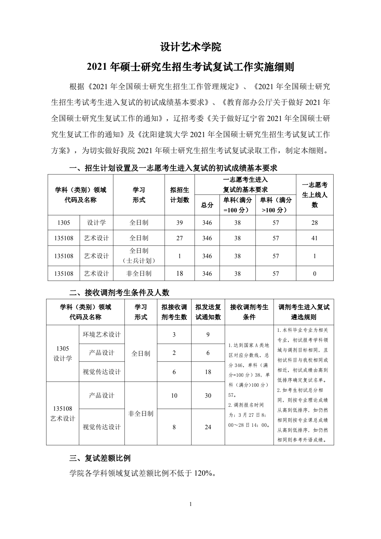 沈陽建筑大學(xué)設(shè)計藝術(shù)學(xué)院2021年考研復(fù)試安排(設(shè)計學(xué)、藝術(shù)設(shè)計) 發(fā)布時間:2021-03-24 沈陽建筑大學(xué)藝術(shù)學(xué)院2021年考研復(fù)試安排 上一篇:沈陽建筑大學(xué)設(shè)計藝術(shù)學(xué)院2019年考研復(fù)試線公示 下一篇:沈陽建筑大學(xué)設(shè)計藝術(shù)學(xué)院2021年考研復(fù)試名單公布