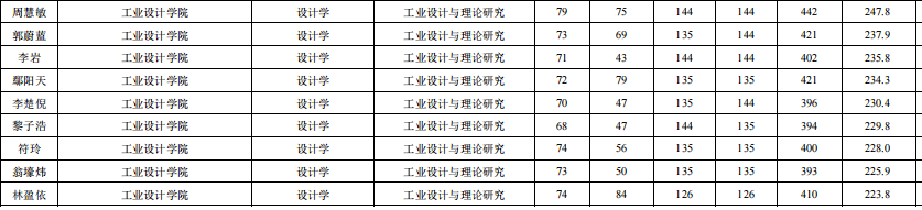 工業(yè)設(shè)計(jì)學(xué)院2021年考研復(fù)試分?jǐn)?shù)線: