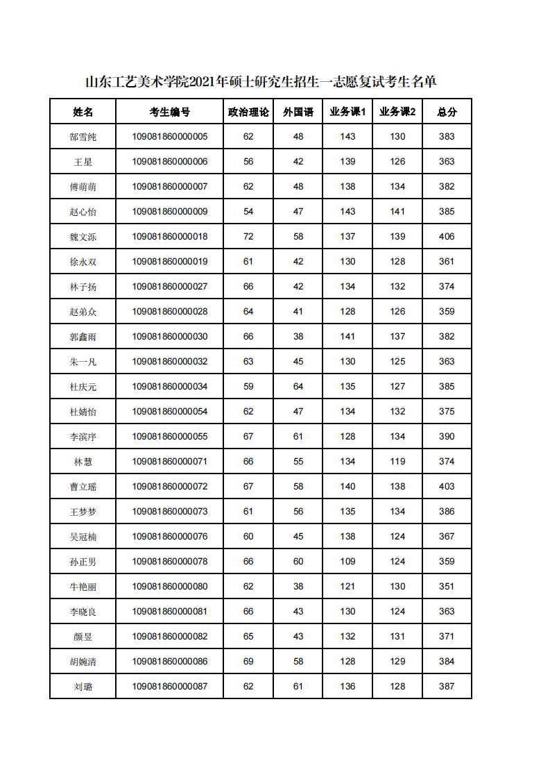 山東工藝美術(shù)學(xué)院2021年考研復(fù)試名單公布 發(fā)布時(shí)間:2021-03-22 山東工藝美術(shù)學(xué)院2021年考研復(fù)試名單公布 上一篇:山東工藝美術(shù)學(xué)院2021年考研復(fù)試錄取工作辦法 下一篇:山東工藝美術(shù)學(xué)院2021年考研復(fù)試時(shí)間安排