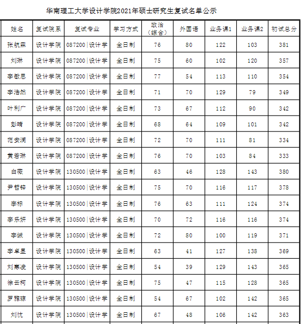 華南理工大學(xué)設(shè)計(jì)學(xué)院2021年考研復(fù)試名單公布 發(fā)布時(shí)間:2021-03-24 華南理工大學(xué)設(shè)計(jì)學(xué)院2021年考研復(fù)試名單公布 上一篇:華南理工大學(xué)設(shè)計(jì)學(xué)院2021年考研復(fù)試分?jǐn)?shù)線及招生人數(shù) 下一篇:華南理工大學(xué)設(shè)計(jì)學(xué)院2021年考研復(fù)試成績(jī)公告