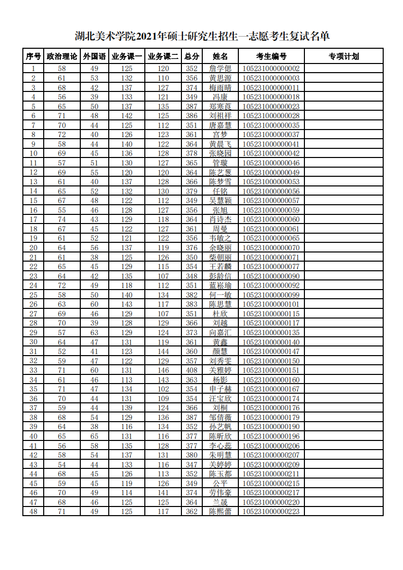 湖北美術學院2021年考研復試名單公布 發(fā)布時間:2021-03-21 湖北美術學院2021年考研復試名單公布 上一篇:湖北美術學院2021年考研復試分數線公布 下一篇:湖北美術學院視覺藝術設計學院2022年考研招生目錄