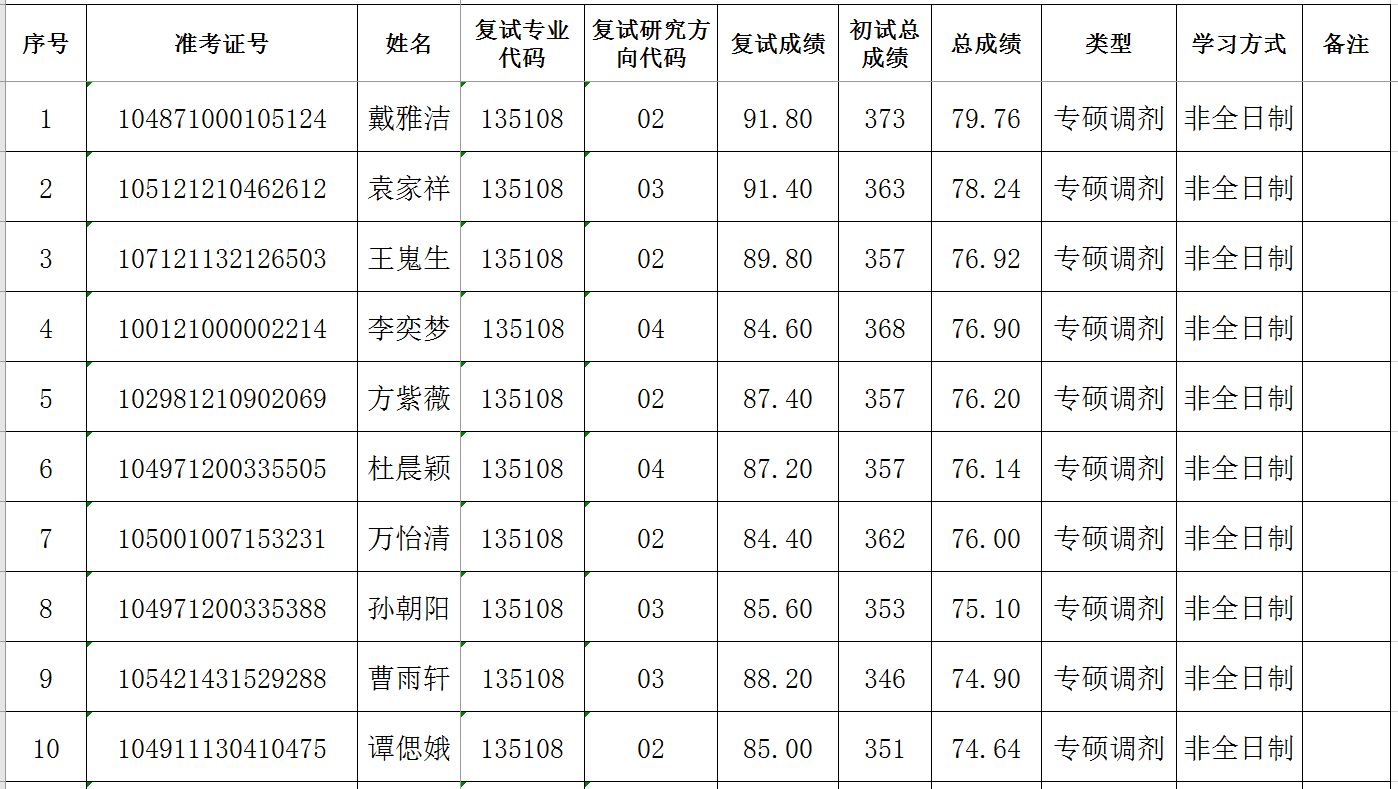 調(diào)劑機械專業(yè)(非全日制)碩士