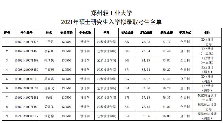 鄭州輕工業(yè)大學(xué)藝術(shù)學(xué)院2021年考研錄取名單公示 發(fā)布時(shí)間:2021-04-19 鄭州輕工業(yè)大學(xué)藝術(shù)學(xué)院2021年考研錄取名單公示 上一篇:鄭州輕工業(yè)大學(xué)藝術(shù)學(xué)院2021年考研復(fù)試分?jǐn)?shù)線及復(fù)試名單 下一篇:鄭州輕工業(yè)大學(xué)2021年考研考試大綱(611設(shè)計(jì)學(xué)概論)