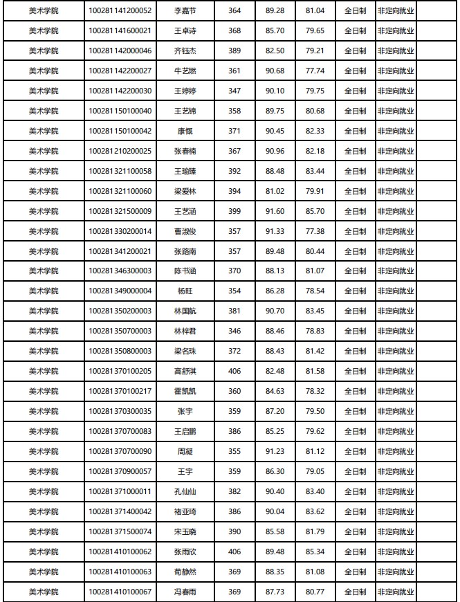首都師范大學(xué)美術(shù)學(xué)院2021年考研錄取名單公示 發(fā)布時(shí)間:2021-04-01 首都師范大學(xué)美術(shù)學(xué)院2021年考研錄取名單公示 上一篇:首都師范大學(xué)美術(shù)學(xué)院2021年碩士生導(dǎo)師介紹 下一篇:首都師范大學(xué)美術(shù)學(xué)院2022年考研招生目錄及參考書目