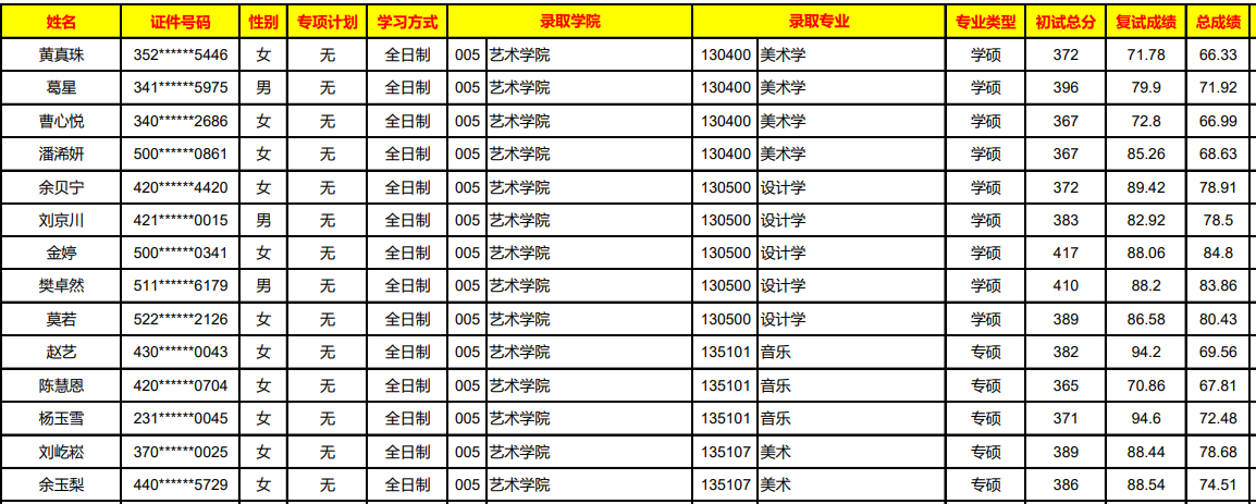 重慶大學(xué)藝術(shù)學(xué)院2021年考研錄取名單公示 發(fā)布時(shí)間:2021-04-19 重慶大學(xué)藝術(shù)學(xué)院2021年考研錄取名單公示 上一篇:重慶大學(xué)藝術(shù)學(xué)院2021年考研復(fù)試成績公示 下一篇:重慶大學(xué)藝術(shù)學(xué)院2022年考研招生目錄