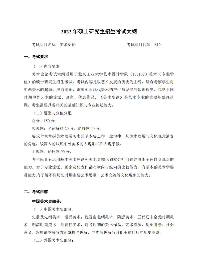北京工業(yè)大學(xué)藝術(shù)設(shè)計(jì)學(xué)院2022年考研考試大綱:619美術(shù)史論