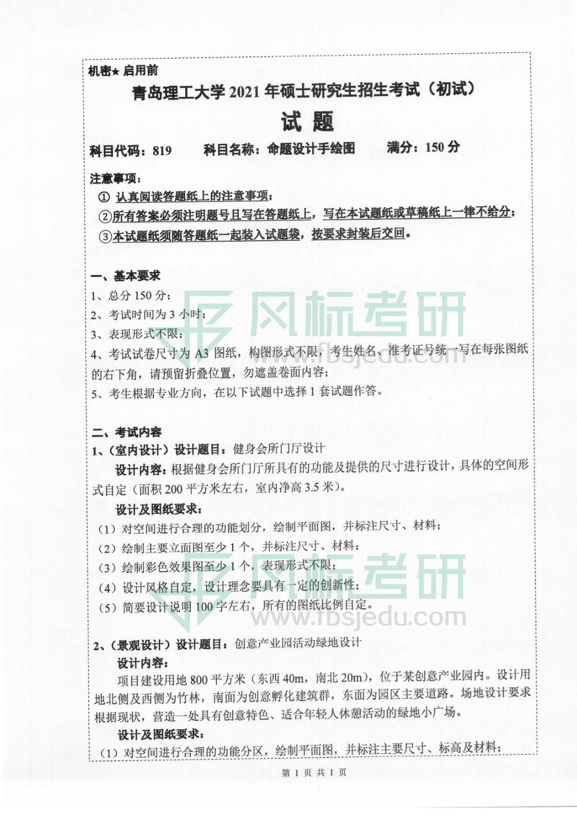 青島理工大學(xué)藝術(shù)設(shè)計(jì)學(xué)院2021年考研真題:819命題設(shè)計(jì)手繪圖