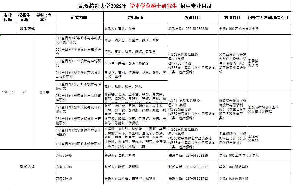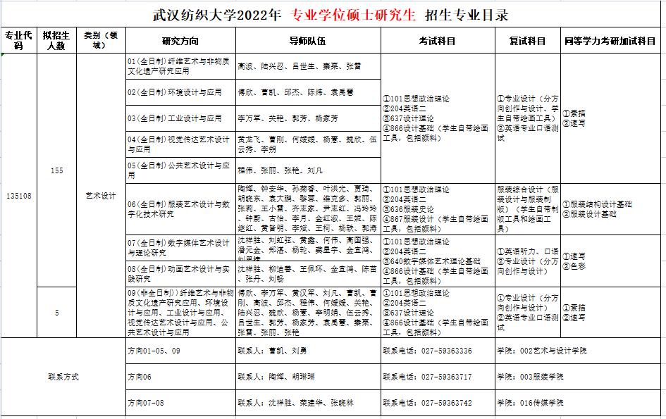 武漢紡織大學(xué)藝術(shù)與設(shè)計(jì)學(xué)院2022年考研招生目錄及參考書(shū)目
