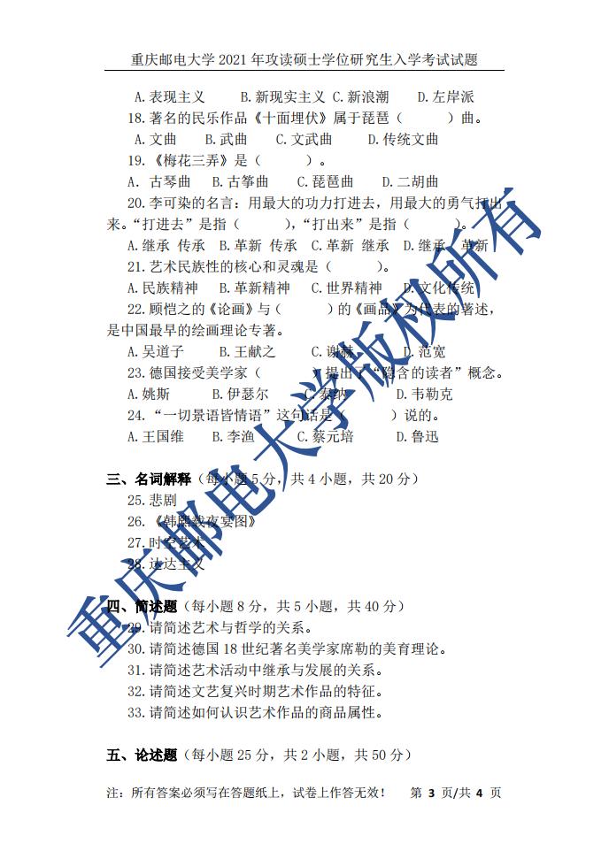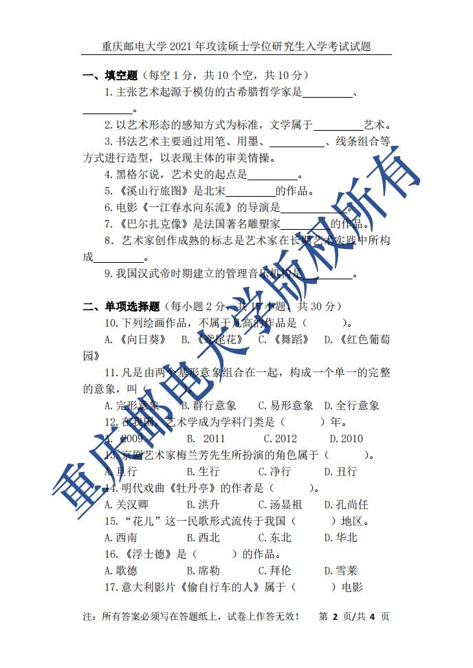 重慶郵電大學(xué)藝術(shù)學(xué)院2021年考研真題:613藝術(shù)綜合 發(fā)布時間:2021-10-04 上一篇:重慶郵電大學(xué)藝術(shù)學(xué)院2021年考研真題:821藝術(shù)設(shè)計理論(A) 下一篇:重慶郵電大學(xué)2022年考研復(fù)試分?jǐn)?shù)線