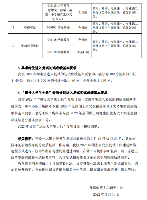 首都師范大學(xué)2022年考研復(fù)試分?jǐn)?shù)線發(fā)布 發(fā)布時間:2022-03-15 首都師范大學(xué)2022年考研復(fù)試分?jǐn)?shù)線發(fā)布 上一篇:首都師范大學(xué)關(guān)于2022年考研初試成績查詢等工作的通知 下一篇:首都師范大學(xué)2022年考研復(fù)試有關(guān)安排、模擬面試及資格審查工作的說明