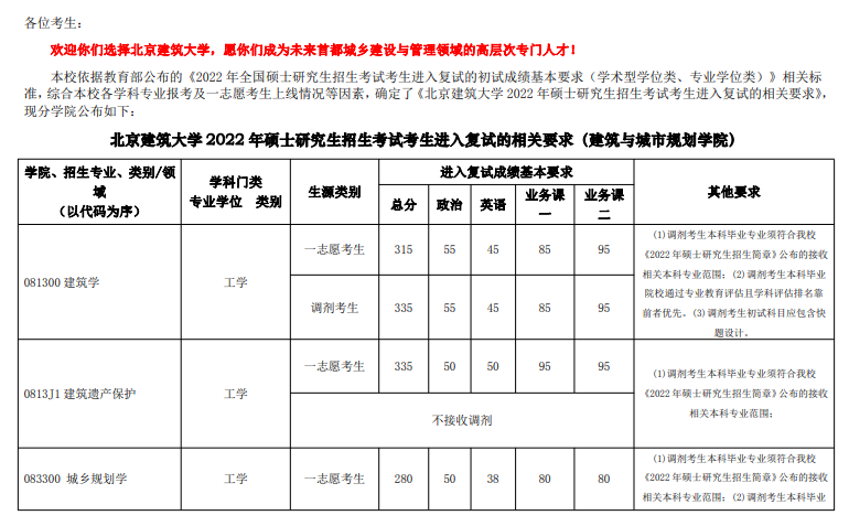 北京建筑大學(xué)2022年考研復(fù)試分?jǐn)?shù)線 發(fā)布時間:2022-03-22 北京建筑大學(xué)2022年考研復(fù)試分?jǐn)?shù)線 上一篇:北京建筑大學(xué)2022年考研初試成績查詢及成績復(fù)查工作的通知 下一篇:北京建筑大學(xué)2022年考研復(fù)試錄取安排