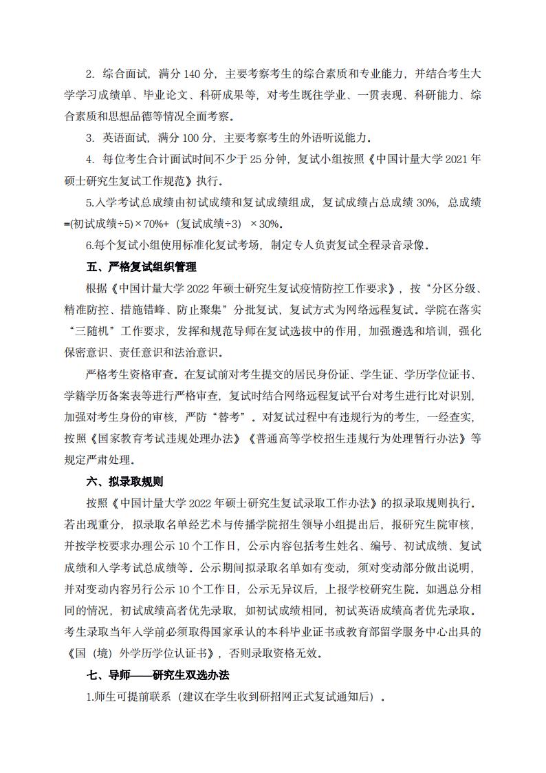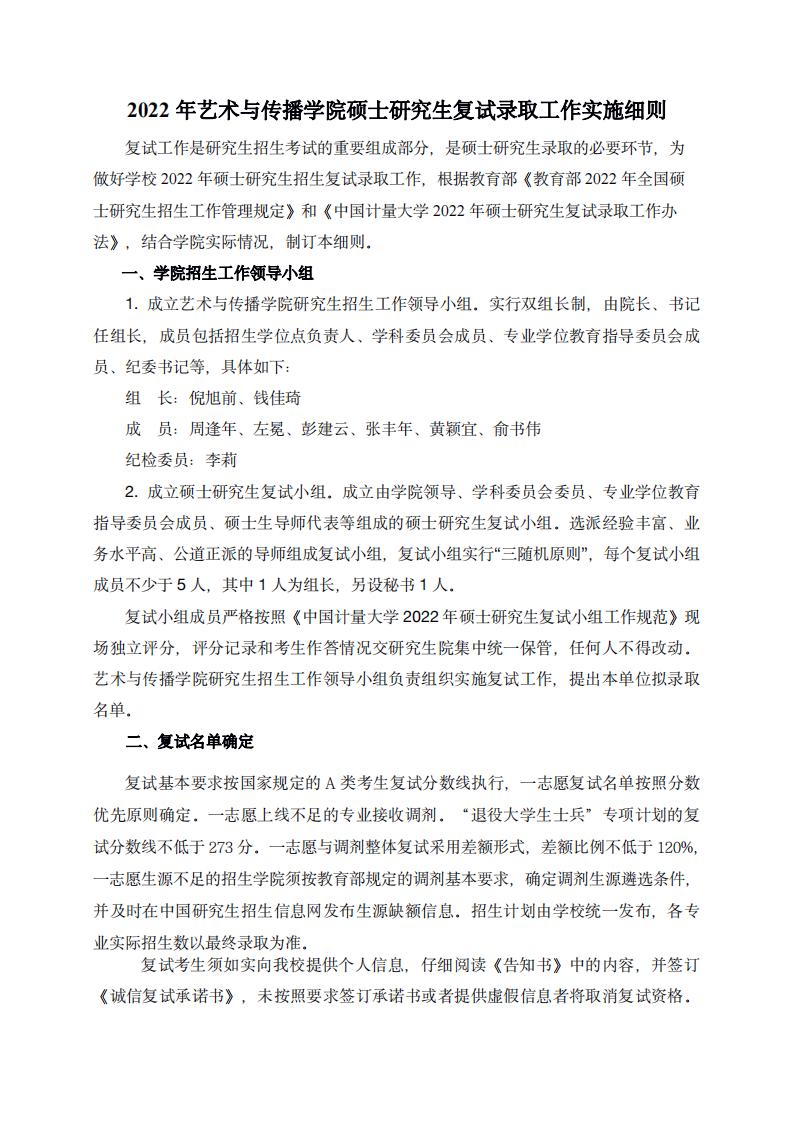 中國計量大學(xué)藝術(shù)與傳媒學(xué)院2022年考研復(fù)試辦法 發(fā)布時間:2022-03-24 中國計量大學(xué)藝術(shù)與傳媒學(xué)院2022年考研復(fù)試辦法 上一篇:中國計量大學(xué)2022年考研復(fù)試分?jǐn)?shù)線 下一篇:中國計量大學(xué)藝術(shù)與傳媒學(xué)院2022年考研復(fù)試名單