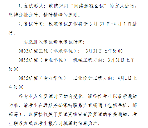 天津工業(yè)大學機械工程學院2022年考研復試安排 發(fā)布時間:2022-03-27 天津工業(yè)大學機械工程學院2022年考研復試安排 上一篇:天津工業(yè)大學機械工程學院2022年碩士招生分專業(yè)計劃 下一篇:天津工業(yè)大學機械工程學院2022年考研復試名單(工業(yè)設計工程)