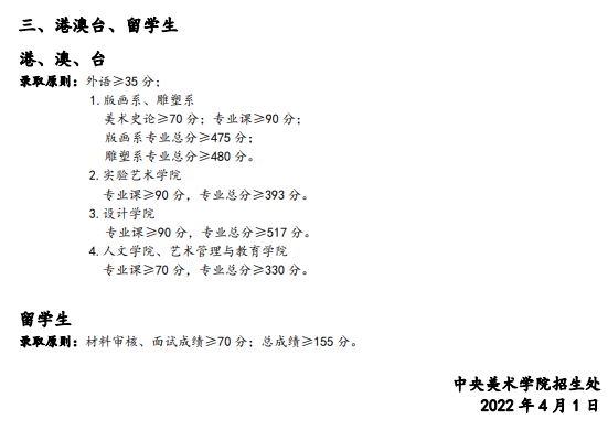中央美術(shù)學(xué)院2022年考研擬錄取原則 發(fā)布時(shí)間:2022-04-01 中央美術(shù)學(xué)院2022年考研擬錄取原則 上一篇:中央美術(shù)學(xué)院2022年考研初試成績(jī)查詢(xún)及復(fù)核通知 下一篇:中央美術(shù)學(xué)院2022年考研擬錄取名單