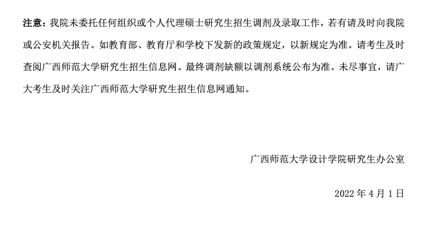 廣西師范大學(xué)設(shè)計(jì)學(xué)院2022年考研調(diào)劑信息 發(fā)布時(shí)間:2022-04-01 廣西師范大學(xué)設(shè)計(jì)學(xué)院2022年考研調(diào)劑信息 上一篇:廣西師范大學(xué)設(shè)計(jì)學(xué)院2022年一志愿復(fù)試安排與工作細(xì)則 下一篇:廣西師范大學(xué)設(shè)計(jì)學(xué)院2022年考研錄取名單