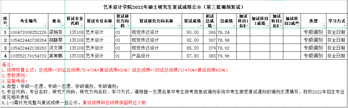 武漢工程大學(xué)藝術(shù)設(shè)計(jì)學(xué)院2022年考研調(diào)劑復(fù)試成績公示 發(fā)布時(shí)間:2022-04-29 武漢工程大學(xué)藝術(shù)設(shè)計(jì)學(xué)院2022年考研調(diào)劑復(fù)試成績公示 上一篇:武漢工程大學(xué)藝術(shù)設(shè)計(jì)學(xué)院2022年考研復(fù)試成績公示(一志愿) 下一篇:武漢工程大學(xué)藝術(shù)設(shè)計(jì)學(xué)院2023年考研招生目錄