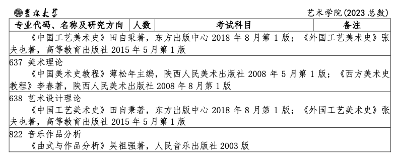 吉林大學(xué)藝術(shù)學(xué)院2023年考研招生目錄及參考書目 發(fā)布時(shí)間:2022-09-15 吉林大學(xué)藝術(shù)學(xué)院2023年考研招生目錄及參考書目更多考研信息咨詢微信18911516590 上一篇:吉林大學(xué)藝術(shù)學(xué)院2022年考研錄取名單 下一篇:吉林大學(xué)2022年工業(yè)設(shè)計(jì)考研真題(回憶版):設(shè)計(jì)理論