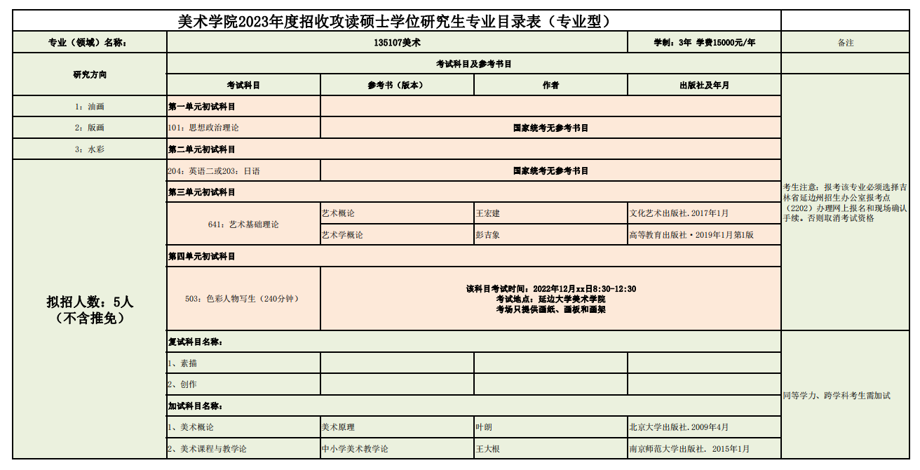 延邊大學(xué)美術(shù)學(xué)院2023年考研招生目錄 發(fā)布時(shí)間:2022-09-15 延邊大學(xué)美術(shù)學(xué)院2023年考研招生目錄更多考研信息咨詢微信18911516590 上一篇:延邊大學(xué)2022年考研復(fù)試錄取工作辦法 下一篇:延邊大學(xué)美術(shù)學(xué)院2024年考研招生目錄