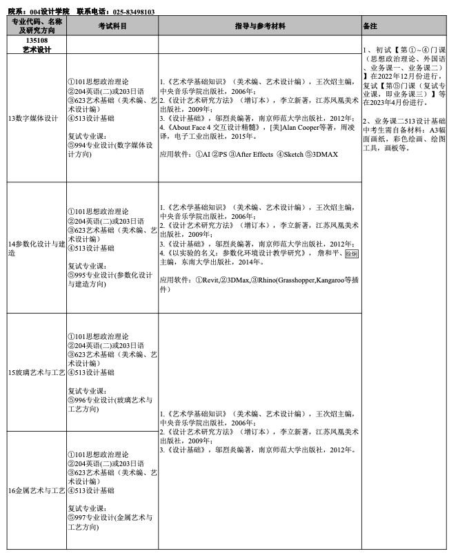 南京藝術(shù)學(xué)院設(shè)計(jì)學(xué)院2023年考研招生目錄 發(fā)布時(shí)間:2022-09-16 南京藝術(shù)學(xué)院設(shè)計(jì)學(xué)院2023年考研招生目錄更多考研信息咨詢(xún)微信18911516590(龔老師) 上一篇:南京藝術(shù)學(xué)院2022年擬接收推免生名單公示 下一篇:南京藝術(shù)學(xué)院工業(yè)設(shè)計(jì)學(xué)院2023年考研招生目錄