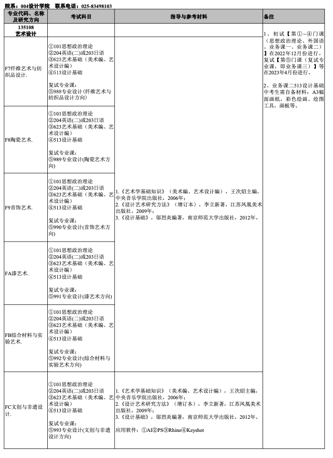 南京藝術(shù)學(xué)院設(shè)計(jì)學(xué)院2023年考研招生目錄(非全日制)