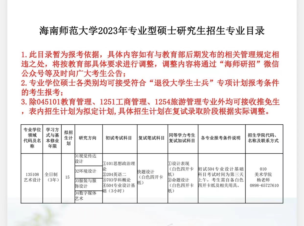 海南師范大學(xué)美術(shù)學(xué)院2023年考研招生目錄及參考書目 發(fā)布時(shí)間:2022-09-01 海南師范大學(xué)美術(shù)學(xué)院2023年考研招生目錄及參考書目 上一篇:海南師范大學(xué)美術(shù)學(xué)院簡(jiǎn)介 下一篇:海南師范大學(xué)美術(shù)學(xué)院2022年考研錄取名單:藝術(shù)設(shè)計(jì)