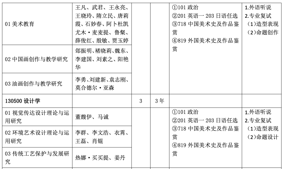 新疆師范大學(xué)美術(shù)學(xué)院2023年考研招生目錄及參考書(shū)目