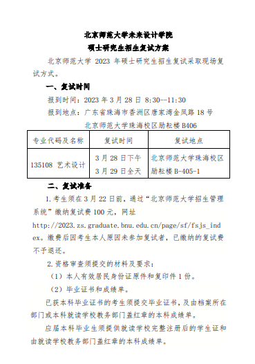 北京師范大學未來設(shè)計學院2023年考研復(fù)試錄取公告 發(fā)布時間:2023-03-20 北京師范大學未來設(shè)計學院2023年考研復(fù)試錄取公告 上一篇:北京師范大學2022年工業(yè)設(shè)計考研真題(回憶版):721藝術(shù)原理 下一篇:北京師范大學未來設(shè)計學院2023年考研復(fù)試分數(shù)線發(fā)布