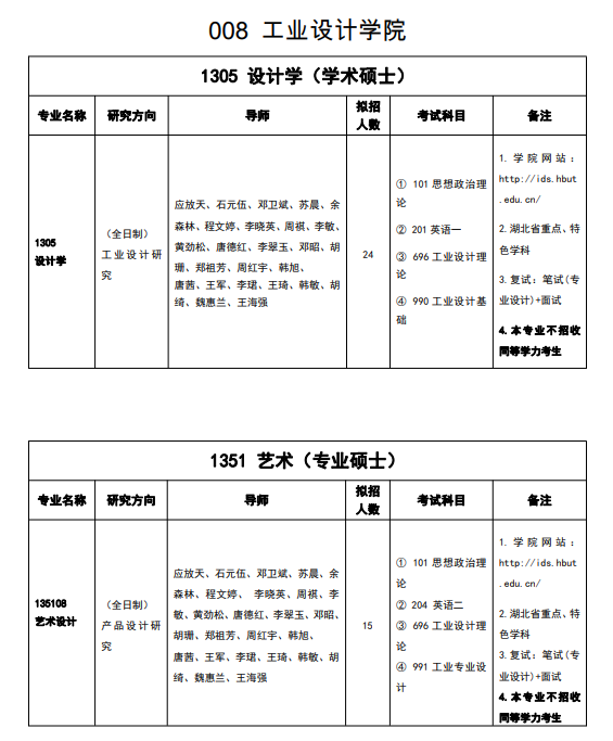 湖北工業(yè)大學(xué)工業(yè)設(shè)計(jì)學(xué)院2023年考研招生目錄及參考書目