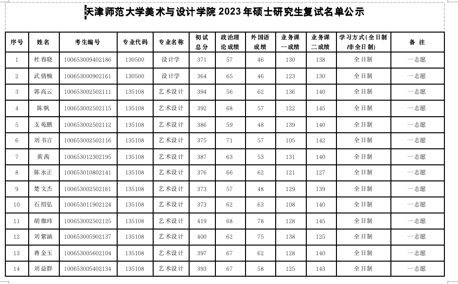 天津師范大學(xué)美術(shù)與設(shè)計學(xué)院2023年考研復(fù)試名單 發(fā)布時間:2023-03-30 天津師范大學(xué)美術(shù)與設(shè)計學(xué)院2023年考研復(fù)試名單 上一篇:天津師范大學(xué)美術(shù)與設(shè)計學(xué)院2023年考研復(fù)試分?jǐn)?shù)線及招生人數(shù) 下一篇:天津師范大學(xué)美術(shù)與設(shè)計學(xué)院2023年考研錄取名單