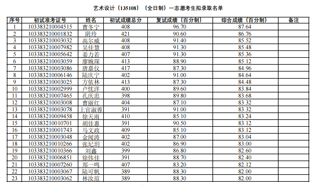浙江理工大學(xué)藝術(shù)與設(shè)計(jì)學(xué)院2023年考研錄取名單